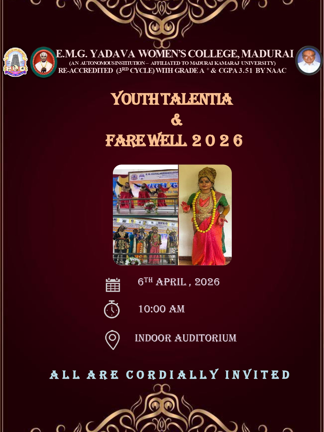 The Management, Principal, Staff, and Students cordially invite to ‘Youth Talentia’ – a vibrant celebration of talent, followed by a heartfelt Farewell.