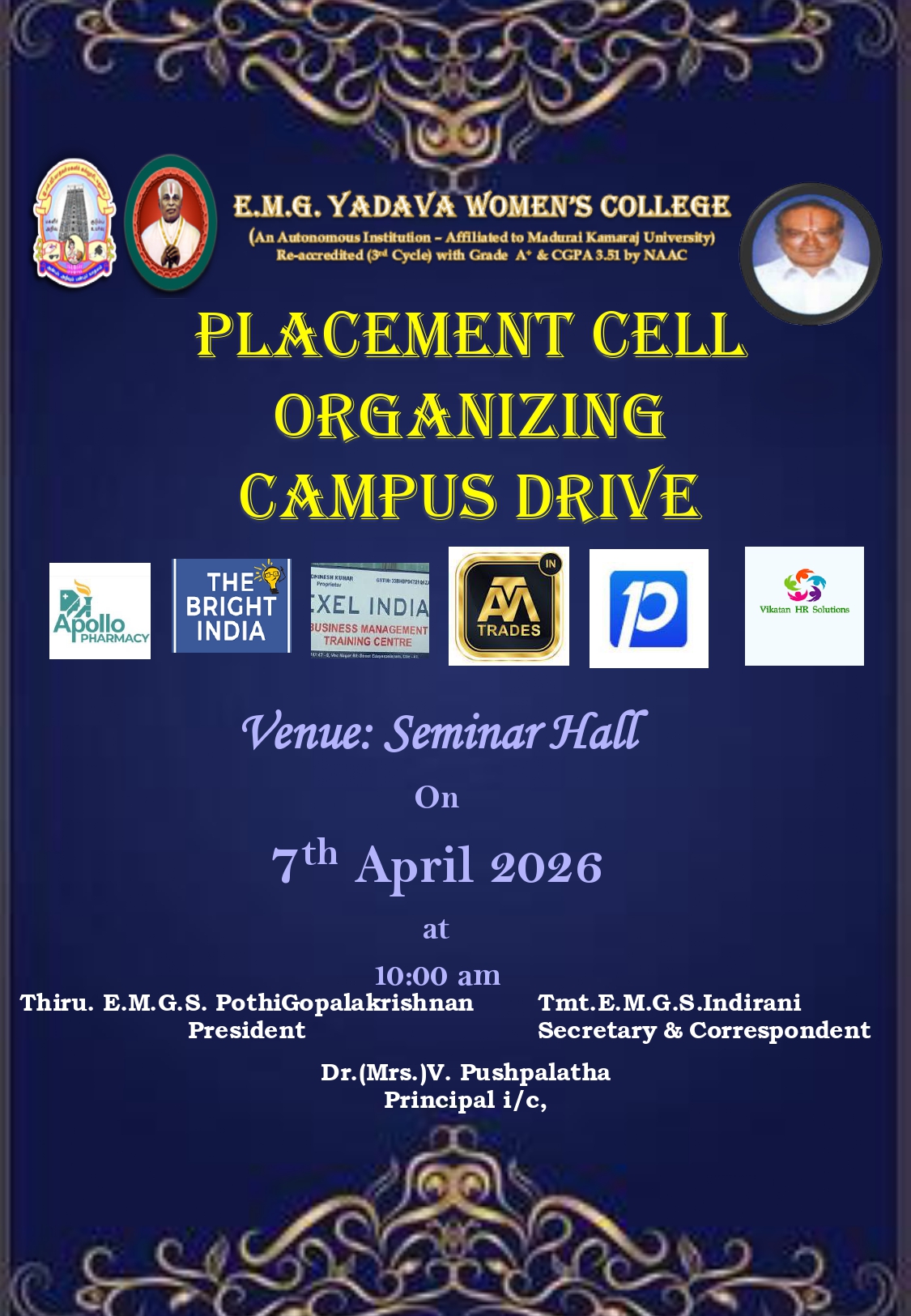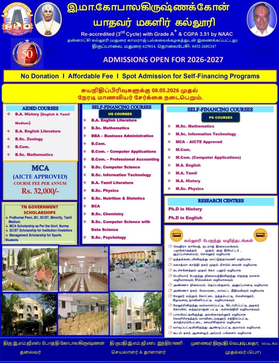 E.M.GopalaKrishna Kone Yadava Women’s College was established in the year 1974. Read More