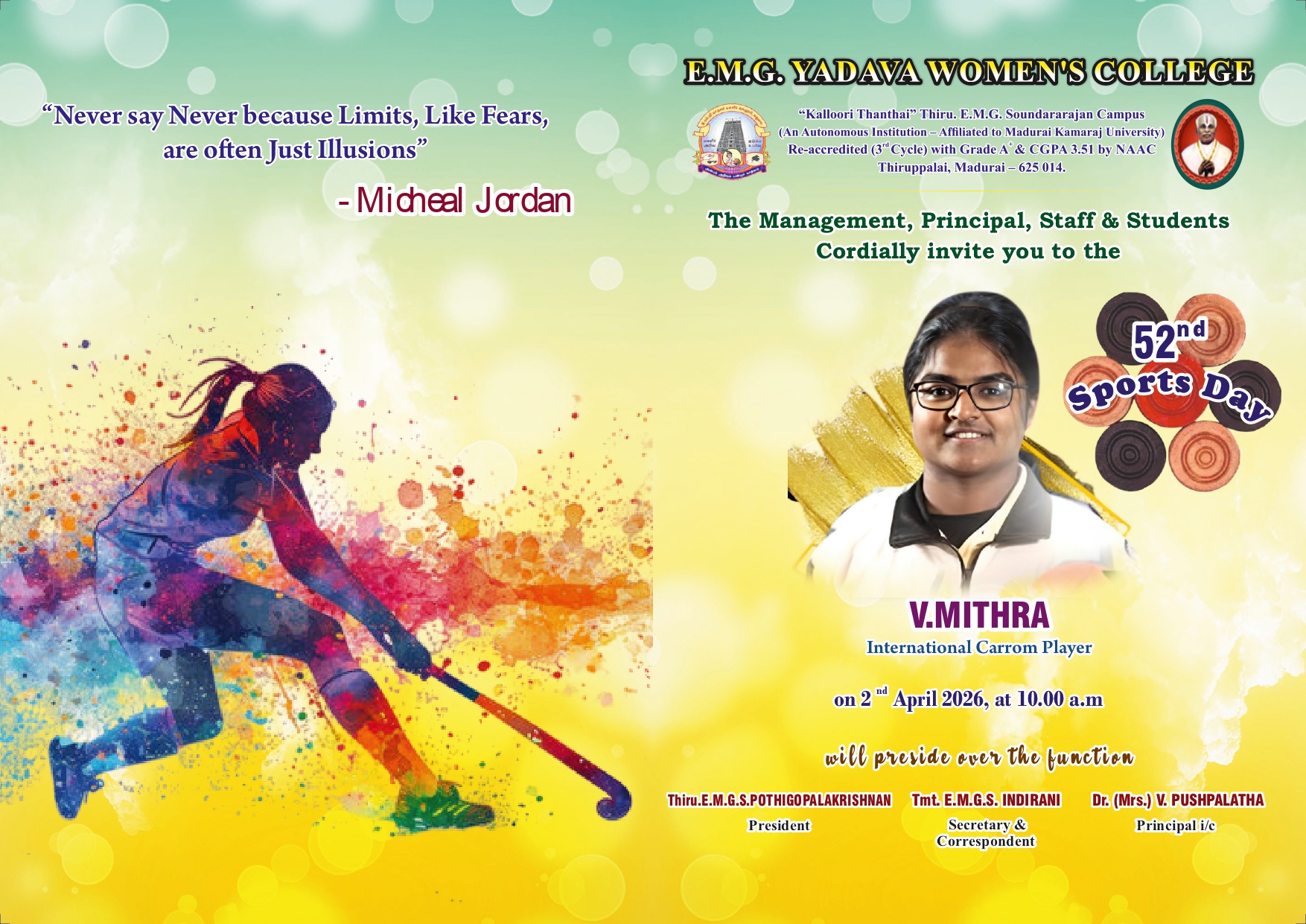 The Management, Principal, Staff & Students Cordially invite you to the 52nd Sports Day at 10.00 a.m.